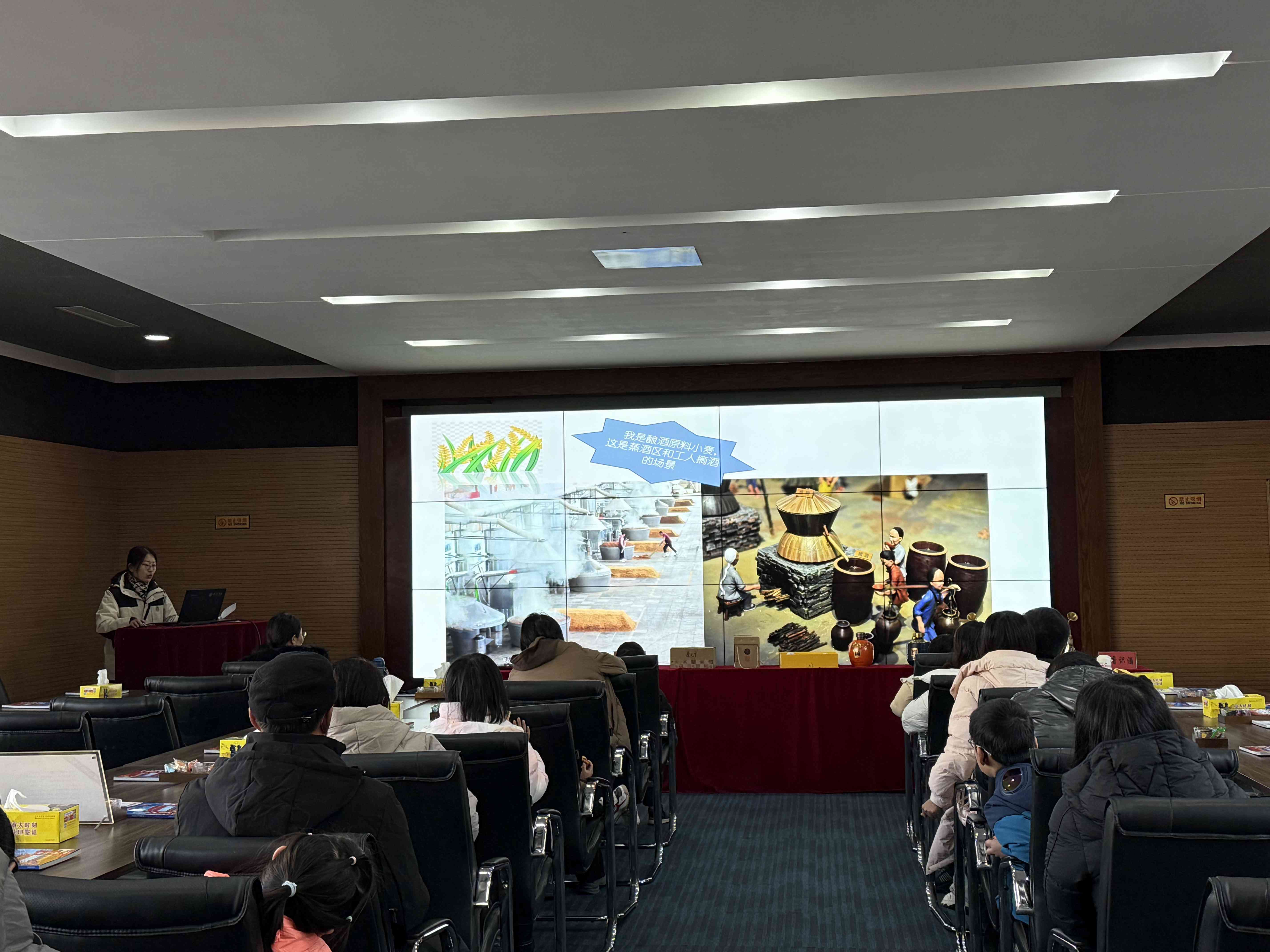 在釀酒車間,游客們得以沉浸式感受傳統(tǒng)的國家非物質文化遺產——老五甑釀造技藝。目睹了佳釀的誕生過程,孩子們更是對釀酒過程充滿了好奇和興趣,紛紛向講解員提問,現(xiàn)場熱鬧非凡。