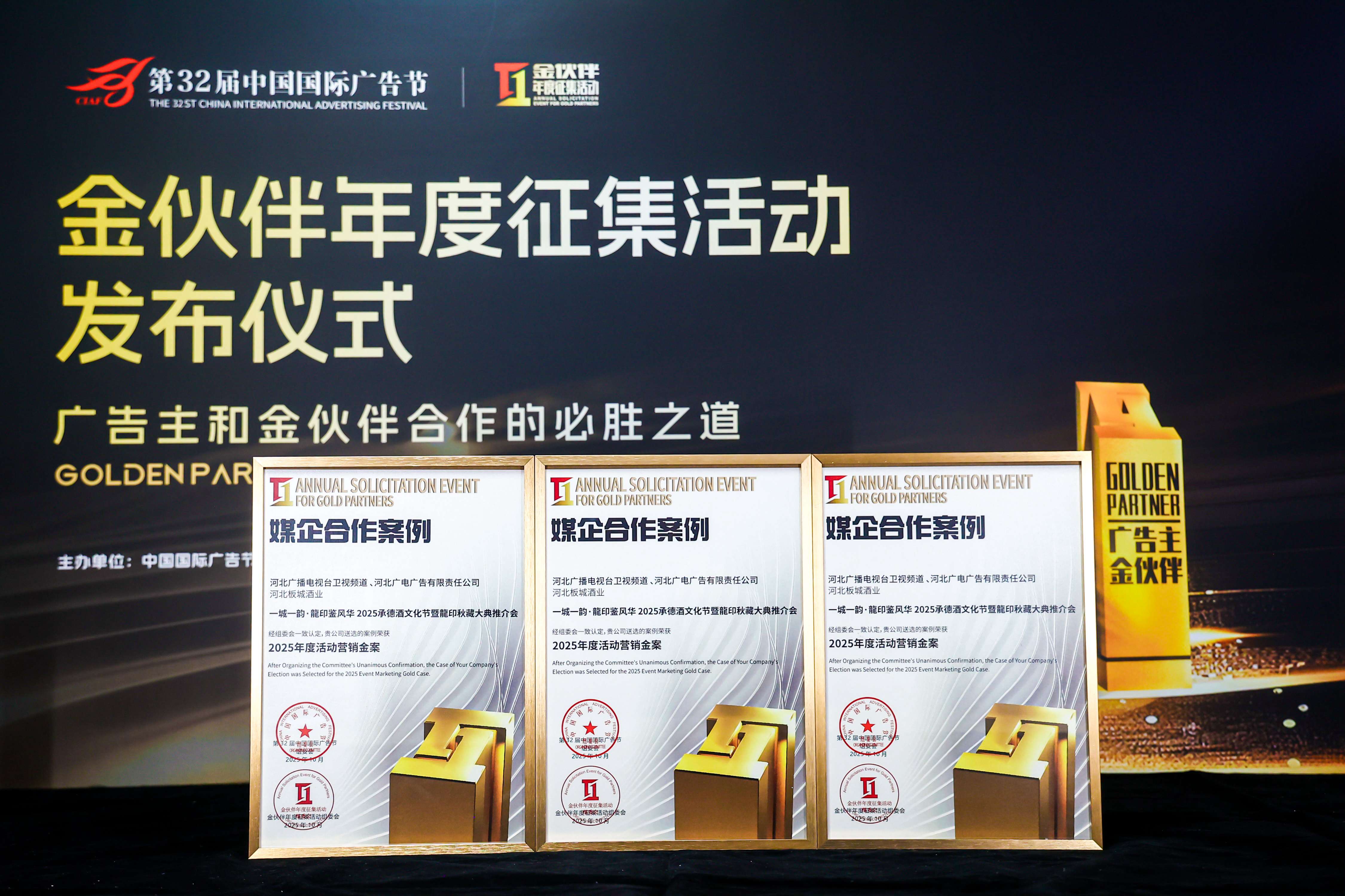 同時(shí),板城酒業(yè)與河北衛(wèi)視合作的“一城一韻,龍印鑒風(fēng)華2025承德酒文化節(jié)暨龍印秋藏大典推介會(huì)”案例榮獲2025年度活動(dòng)營銷金案。
