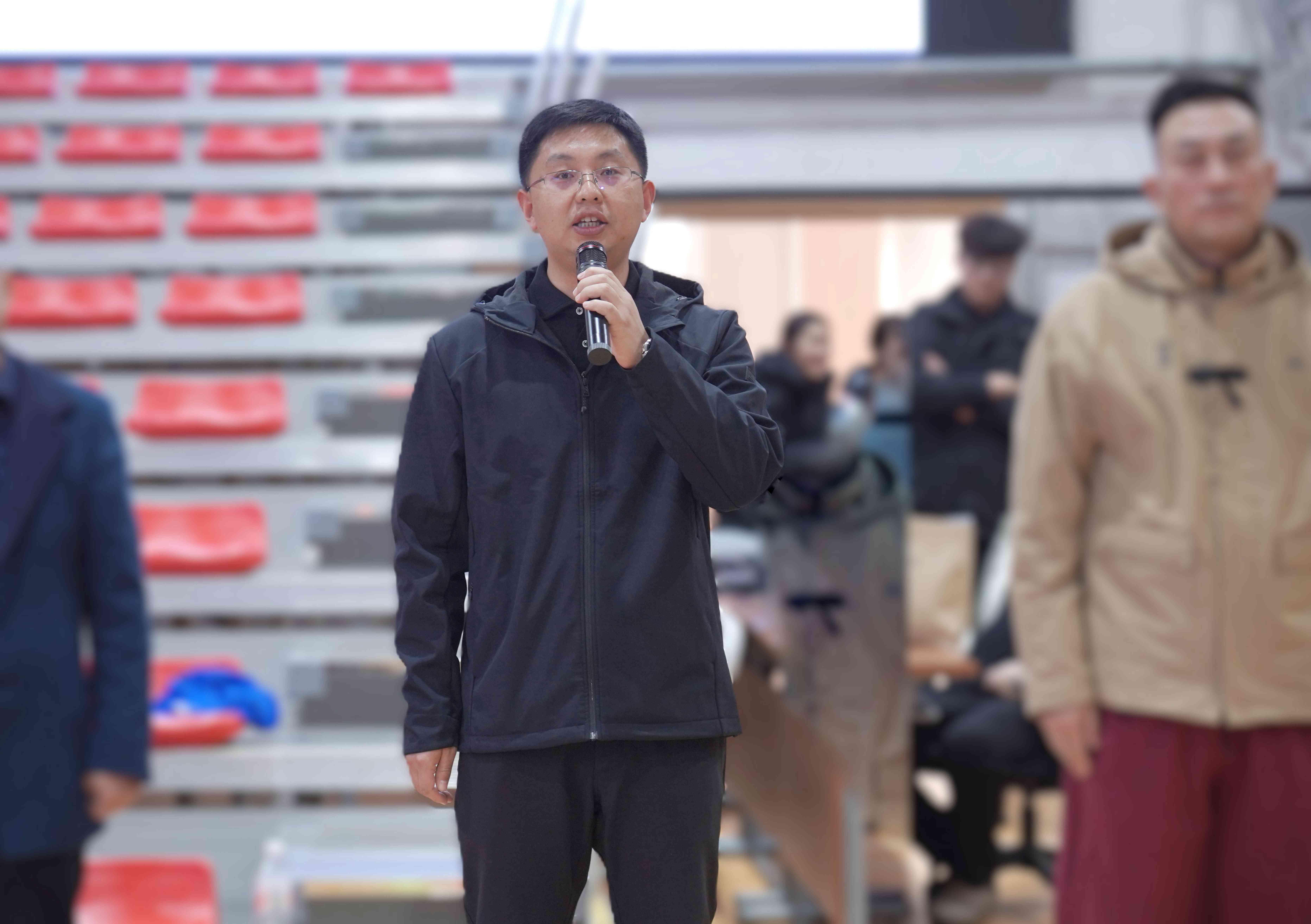 河北板城酒業(yè)銷售市場總監(jiān)王曉波致辭:“承德這片土地孕育的‘和合共生’精神,與板城酒業(yè)秉持的‘和順’文化一脈相承。我們期待本屆賽事不僅能展現(xiàn)競技體育的激情,更能讓同學們在團隊協(xié)作中品味成長之味,讓‘板城和順’的醇厚與青春的汗水交融,共釀今冬最美記憶。”