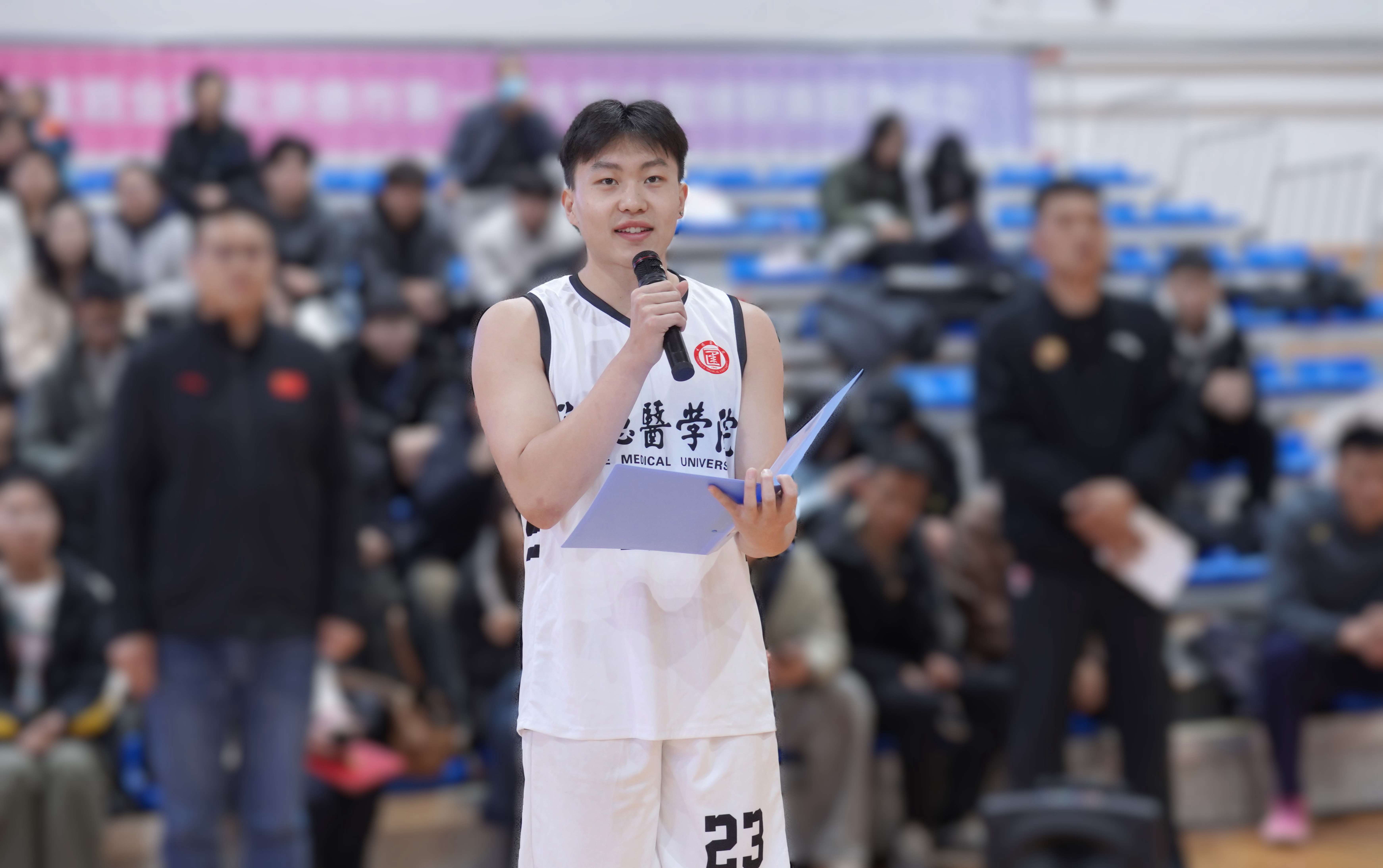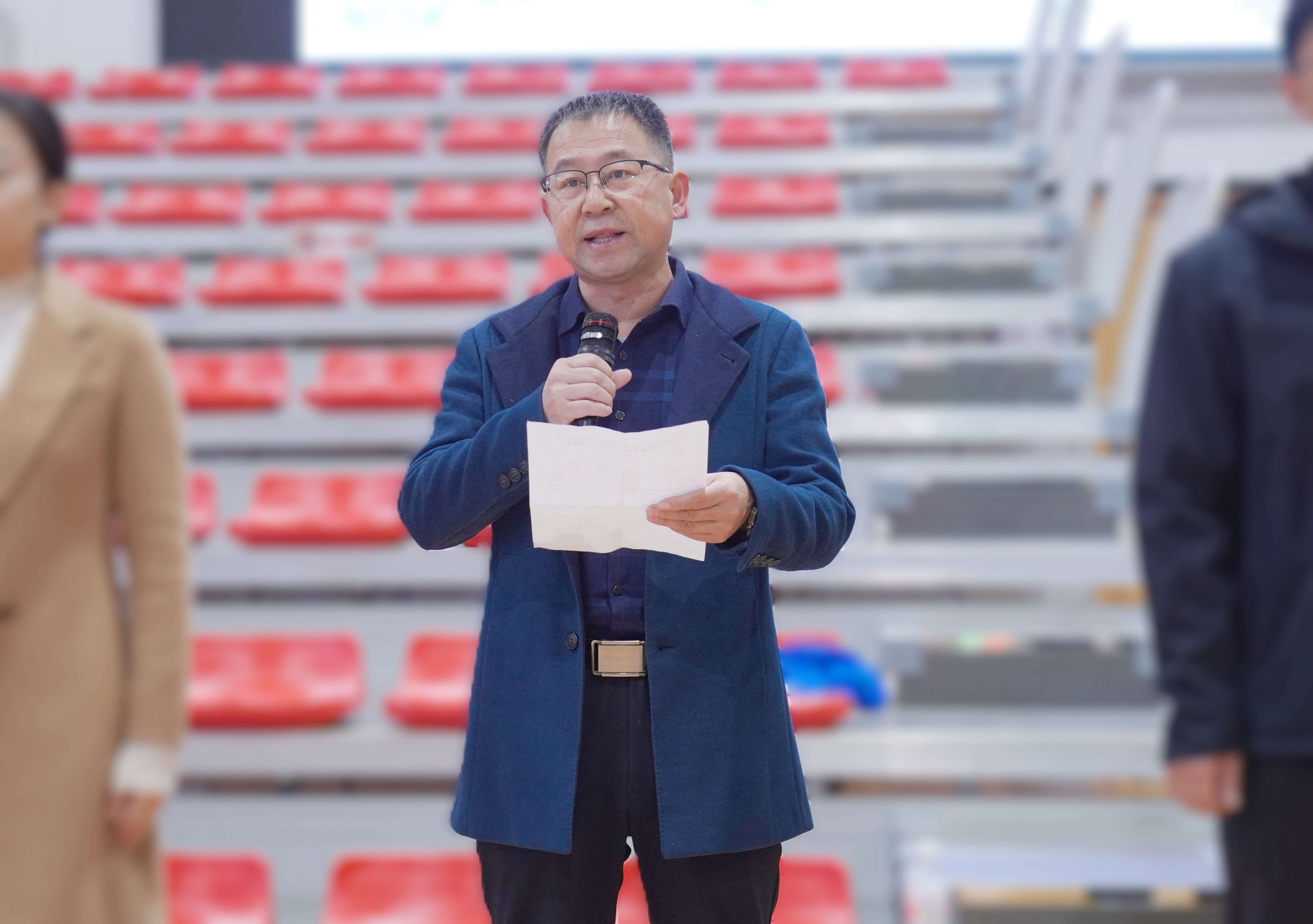承德醫(yī)學院黨委常委、副校長郭玉成致開幕詞,郭校長在開幕辭中勉勵學子,恪守校訓,將籃球賽場上的拼搏與協(xié)作化為成長養(yǎng)分。他高度肯定了“板城和順杯”所承載的校企協(xié)同育人新模式,這不僅是一次體育賽事,更是校企雙方深化合作、共育棟梁的生動實踐,展現(xiàn)了企業(yè)回饋社會、助力教育發(fā)展的責任擔當。